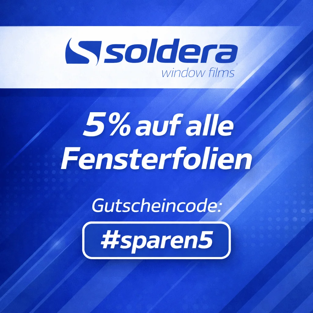 Bei sachgerechter Montage und Pflege halten Soldera Fensterfolien im Innenbereich bis zu 15 Jahre. Spezielle Folien zur Außenanwendung trotzen bis zu 7 Jahre Wind und Wetter, Indoor sind auch sie auf bis zu 15 Jahre ausgelegt. Verwenden Sie niemals Folien für den Innenbereich außen, denn das zerstört das Material innerhalb kurzer Zeit.